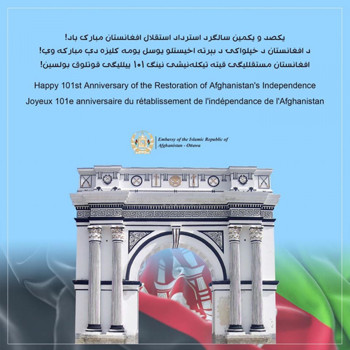 “Today, our fellow Afghans across the world including Afghan-Canadian community celebrate the 101st anniversary of the restoration of Afghanistan’s independence.