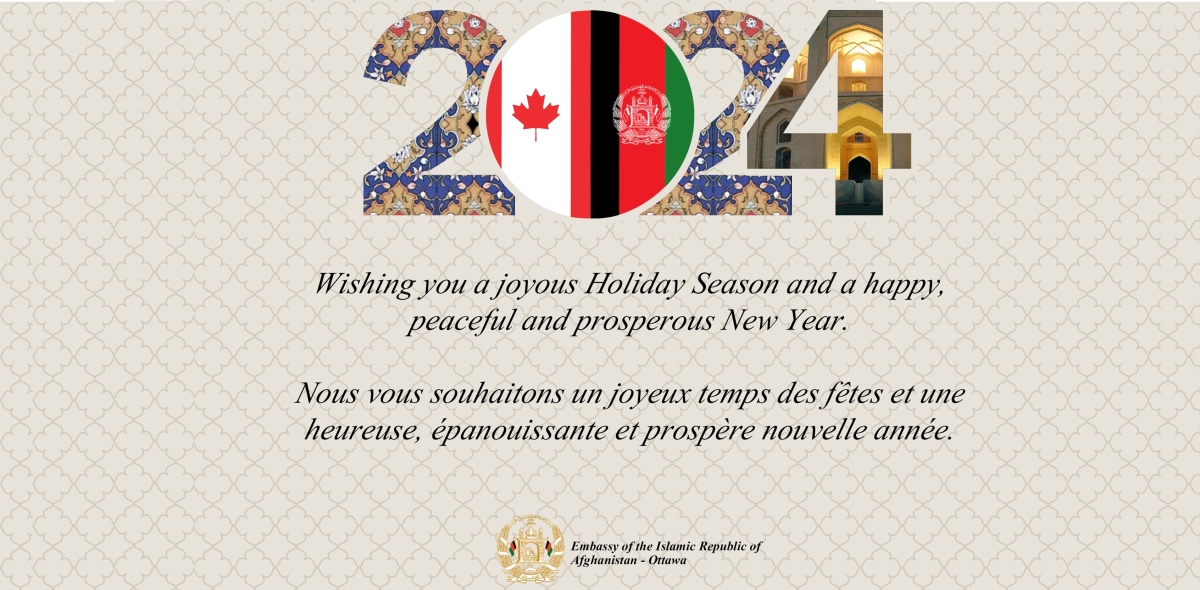 The Embassy of the Islamic Republic of Afghanistan and the Consular Section in Ottawa will be closed on Monday and Tuesday, December 25 and 26, 2023 as well as on Monday, January 01, 2024 due to Holiday Season and New Year’s Day .