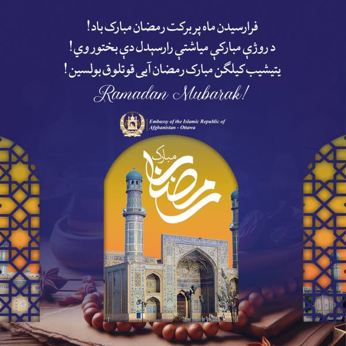 The Embassy of the Islamic Republic of Afghanistan in Ottawa and its Consular Section will be closed on Wednesday, February 18, 2026 on the occasion of the first day of the Holy Month of Ramadan.