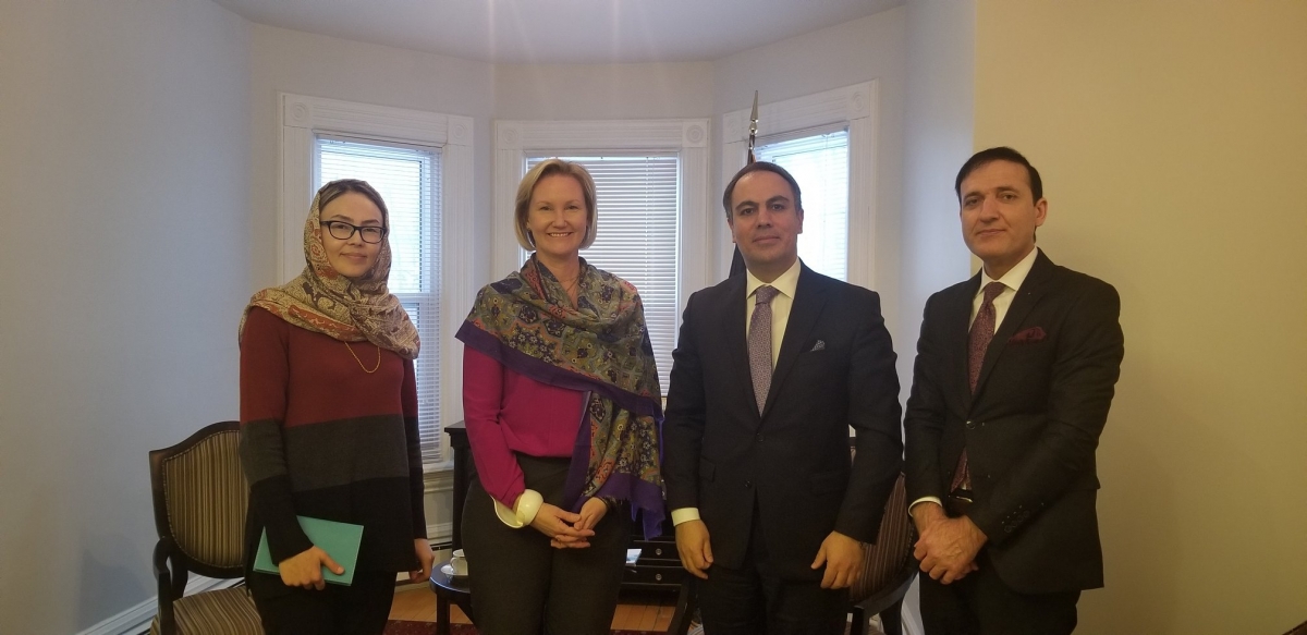 Ambassador Hassan Soroosh met with Ms. Meredith Preston McGhie, the new Secretary General of the Global Center for Pluralism at the Embassy of Afghanistan in Ottawa. The two sides discussed the ongoing activities and projects under the Center. They further discussed the potential for future cooperation with both governmental and non-governmental organizations in Afghanistan in areas of focus under the Center including research and analysis; education; global pluralism award; and global pluralism index.