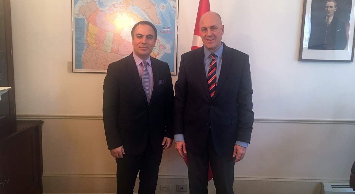 OTTAWA - Ambassador-designate Hassan Soroosh met today with H.E. Kerim Uras, Ambassador of the Republic of Turkey in Ottawa. They discussed various areas of cooperation between the two countries at all bilateral, regional and international levels. They further discussed the potential for triangular cooperation between Afghanistan, Turkey and Canada including in the area of trade and investment.
