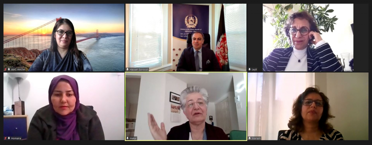 په کاناډا کې د افغانستان اسلامي جمهوریت سفیر ښاغلي حسن سروش د ۲۰۲۱ کال د اپریل په ۶ نېټه په مونټریال کې د افغان ښځو د مرکز له رئیسې او رهبري هیئت سره مجازي لیدنه او ملاقات ترسره کړ. د افغانستان سفیر د سفارت د لومړیتوبونو او پروګرامونو، له هغې ډلې په دوه اړخیزه او څو اړخیزه کچه د افغان ښځو د پیاوړتیا په هکله خبرې وکړې.