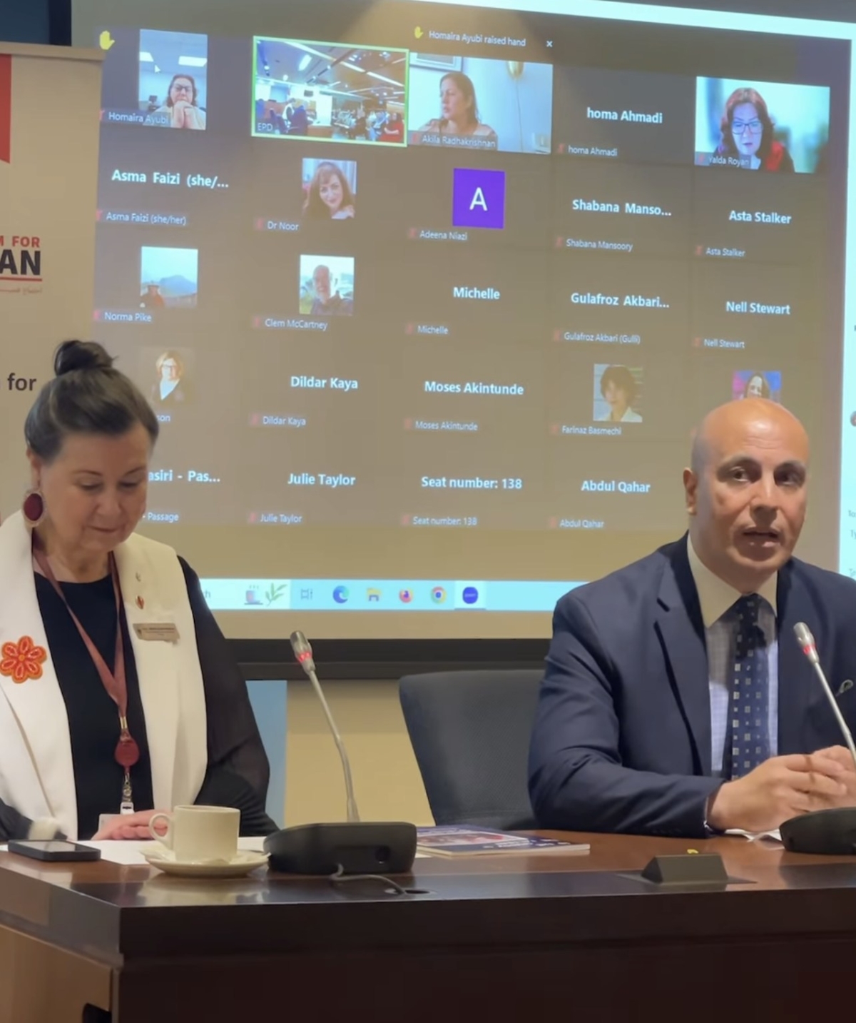 Ambassador Soroosh spoke about the current multifaceted crisis in Afghanistan and the fact that women continue to suffer the brunt of this tragic situation in the country.