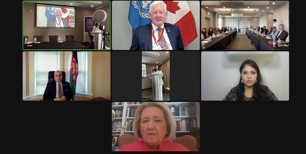 Ambassador Hassan Soroosh spoke today in the opening session of a hybrid event “Global Alliance in Support of Afghanistan women” which was organized by the Women & Children Research and Advocacy Network (WCRAN) in Mississauga, Canada.