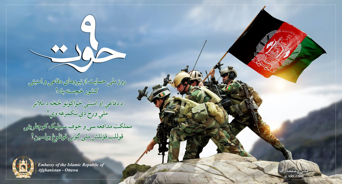 روز ملی حمایت از نیروهای دفاعی و امنیتی افغانستان را به تمام نیروهای قهرمان و متعهد امنیتی و دفاعی کشور از صمیم قلب تبریک عرض می کنیم. به این مناسبت مهم، از تلاش ها و قربانی های نیروهای امنیتی و دفاعی کشور در دفاع از استقلال، تمامیت ارضی و ارزشها و دستاوردهای کشور ابراز قدرانی می نماییم و به روح شهدای کشور که جان های شان را در این راستا از دست داده اند درود می فرستیم.
