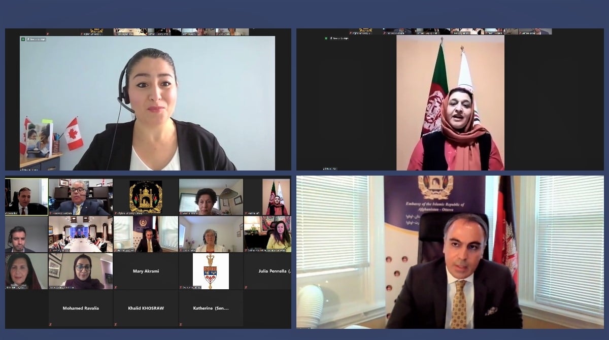 Her Excellency Hasina Safi, Acting Minster of Women’s Affairs of Afghanistan; the Honourable Maryam Monsef, Canada’s Minster for Women and Gender Equality and Rural Economic Development; Hon. Deb Shulte, Canada’s Minister of Seniors; H.E. Hassan Soroosh, Ambassador of Afghanistan to Canada; Hon. Senator Salma Ataullahjan, Co-chair of Canada-Afghanistan Parliamentary Friendship Group; Hon. Francesco Sorbara, Co-chair of Canada-Afghanistan Parliamentary Friendship Group; Hon. Sameer Zuberi, member of the Standing Committee on Justice and Human Rights and the Standing Committee for the Scrutiny of Regulations; Hon. Yasmin Ratansi, member of Canada-Afghanistan Parliamentary Friendship Group, and the Head of the Commonwealth; Hon. Zohra Motahar Ahmadzai, Deputy Chairperson of the High Peace Council of Afghanistan; Hon. Dr. Alema, Deputy Minister for Human Rights and Civil Society of the State Ministry for Peace; Hon. Senator Gulalai Akbari, Chair of the Women’s Affairs Committee (Meshrano Jirga); Hon. MP Naheed Farid, Chair of the Human Rights, Civil Society and Women Affairs Commission (Wolesi Jirga); Hon. MP Shinkai Karookhail, Chair of the Parliamentary Caucus (Wolesi Jirga) and former Ambassador of Afghanistan to Canada; Ms. Maryam Soliamankhel, member of Wolesi Jirga ; Ms. Rahima Jami, member of Wolesi Jirga; Ms. Habiba Danish, member of Wolesi Jirga ; Ms. Ferozan Nawabi, Director General of Human Rights and Women's International Affairs Department, MoFA; Mr. Satar Haqbin, Deputy Director-General of Human Rights and Women's International Affairs Department, MoFA; and Mrs. Mary Akrami, Afghan Women’s Network Executive Director participated and spoke in this virtual meeting.